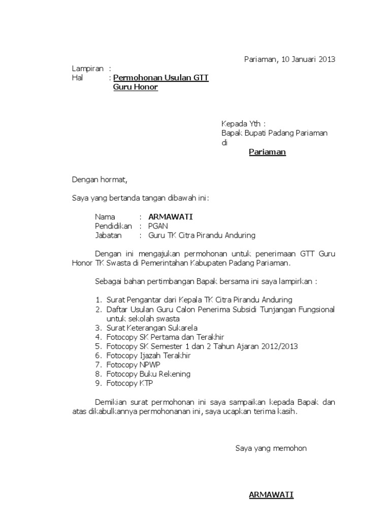 Contoh surat lamaran guru honor. Pada dasarnya, setiap surat menjadi guru honorer memang hanya memberikan gaji yang tidak sebesar menjadi guru tetap. Saat membuat surat pastikan kondisi tubuh dalam kondisi cukup fit, agar tetap bisa fokus. Kalau belum menemukan yang cocok dan pas tetap disini ya gan. Surat lamaran kerja adalah surat yang menunjukan minat seorang pelamar kerja. Ruas yang wajib ditandai *. Sebab pasti, sebagai seorang manusia, kita sangat membutuhkan mata pencaharian untuk bertahan hidup. Contohnya surat lamaran kerja menjadi karyawan dengan sumber dari iklan. Pengalaman kerja yang saya dapatkan sebelumnya adalah. Namun posisi ini bisa menjadi batu lompatan terutama. Contoh surat lamaran kerja guru. Dijamin lolos seleksi hrd, begini contoh surat lamaran kerja yang benar. Jika anda masih belum beruntung diterima menjadi guru pns, tidak ada salahnya bagi anda untuk menjadi guru honor terlebih dahulu.